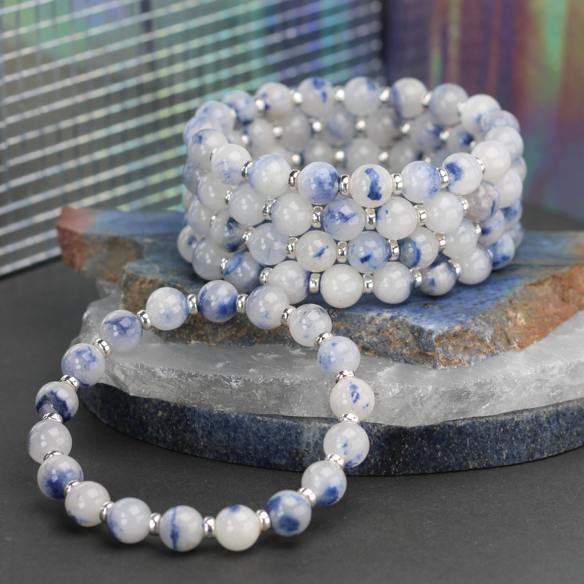Dumortierite In Quartz Power Bracelet With Sterling Silver.