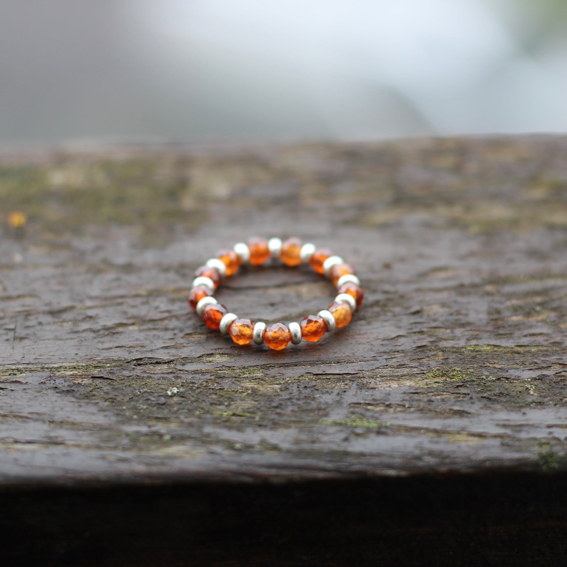 Spessartine Garnet RING With Silver. Presented With A Tin, A Tag & A Herkimer Diamond